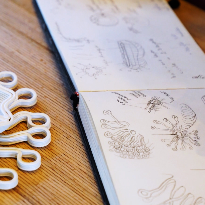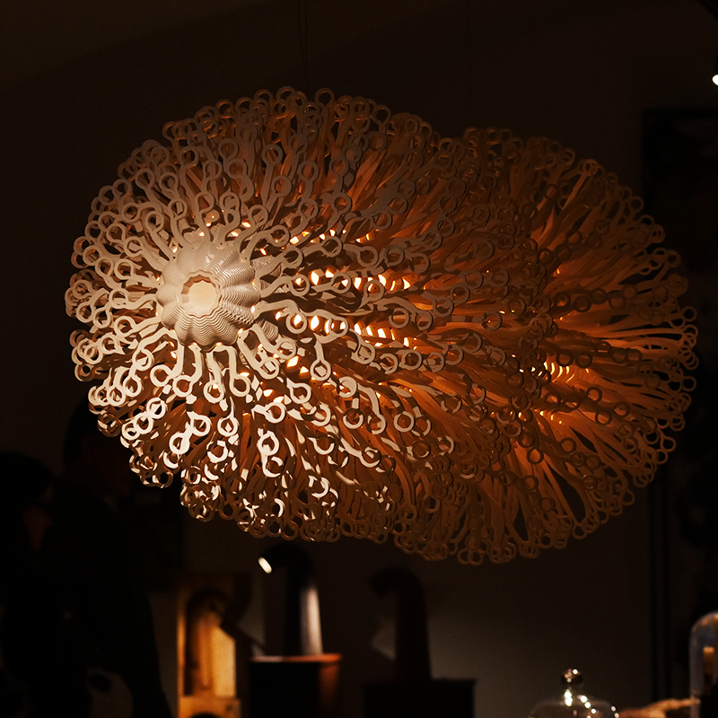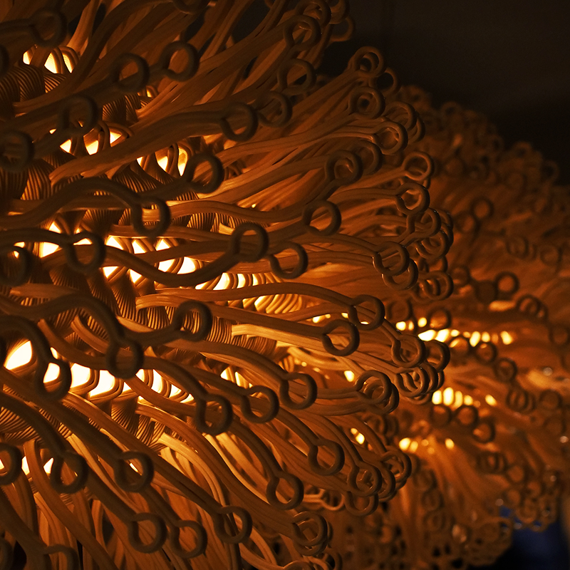 Voor de ROOTS Foundation by Simone van Es voerde 3D Makers Zone een haalbaarheidsonderzoek uit naar het groot formaat 3D-printen met het biopolymeer PHA, met als resultaat: de lamp New Dawn.