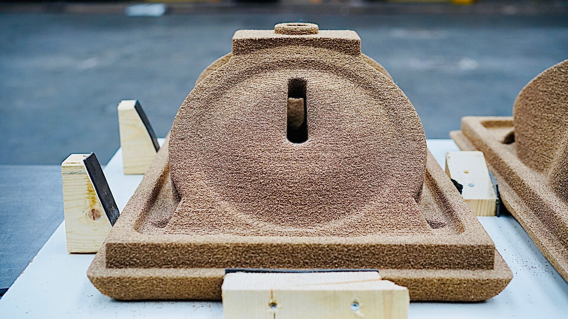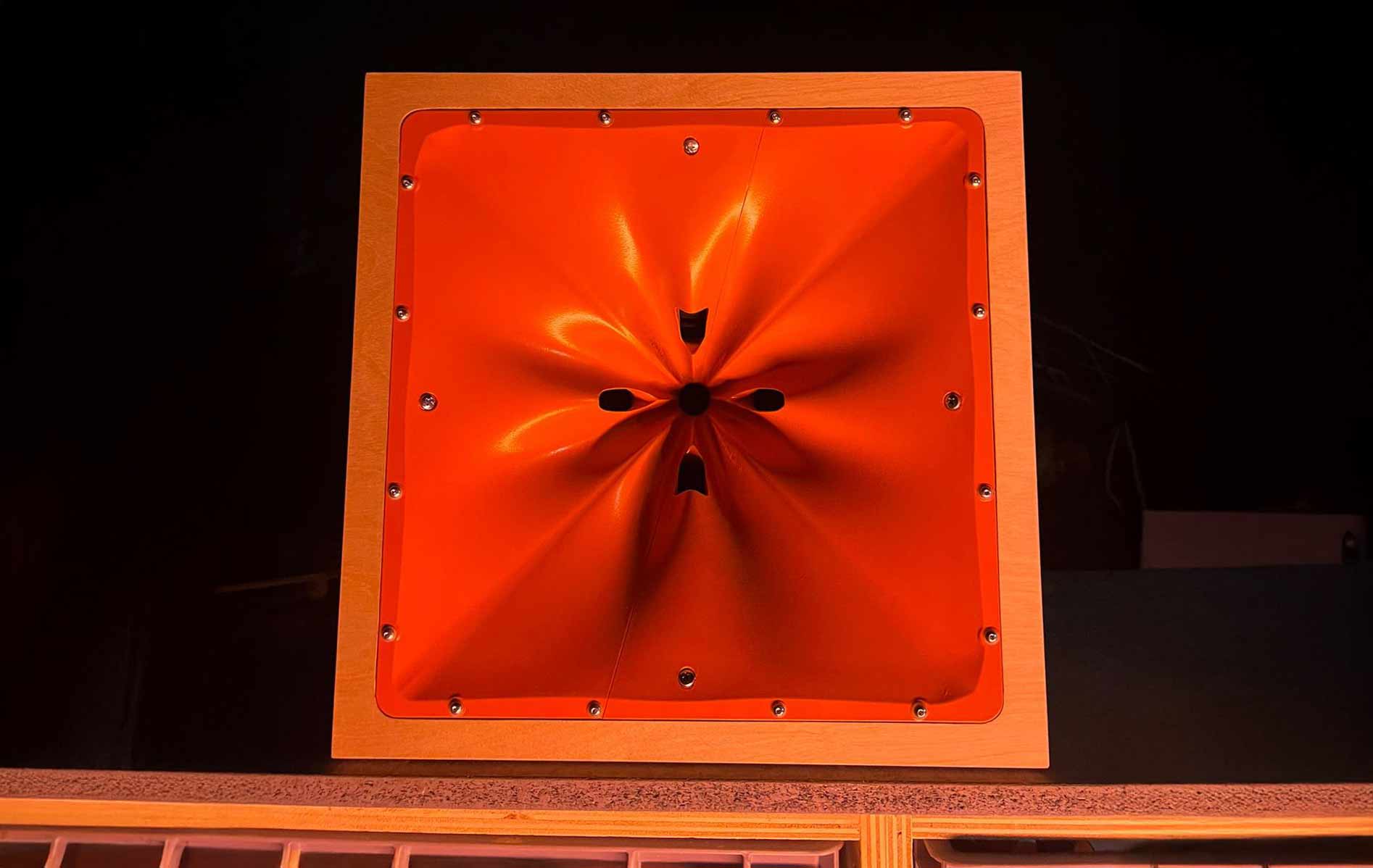 Daarnaast is er een eerste prototype in houtvezel gerealiseerd. Deze wordt momenteel getest in een pilot bij Possibilities Open Studio in Amsterdam. Deze variant biedt meer vrijheid in vorm en detaillering, maar is iets minder robuust. Daardoor is deze vooral interessant voor indoor toepassingen zoals listening bars, theaters en bioscopen, waar systemen vaak op een vaste plek blijven staan.