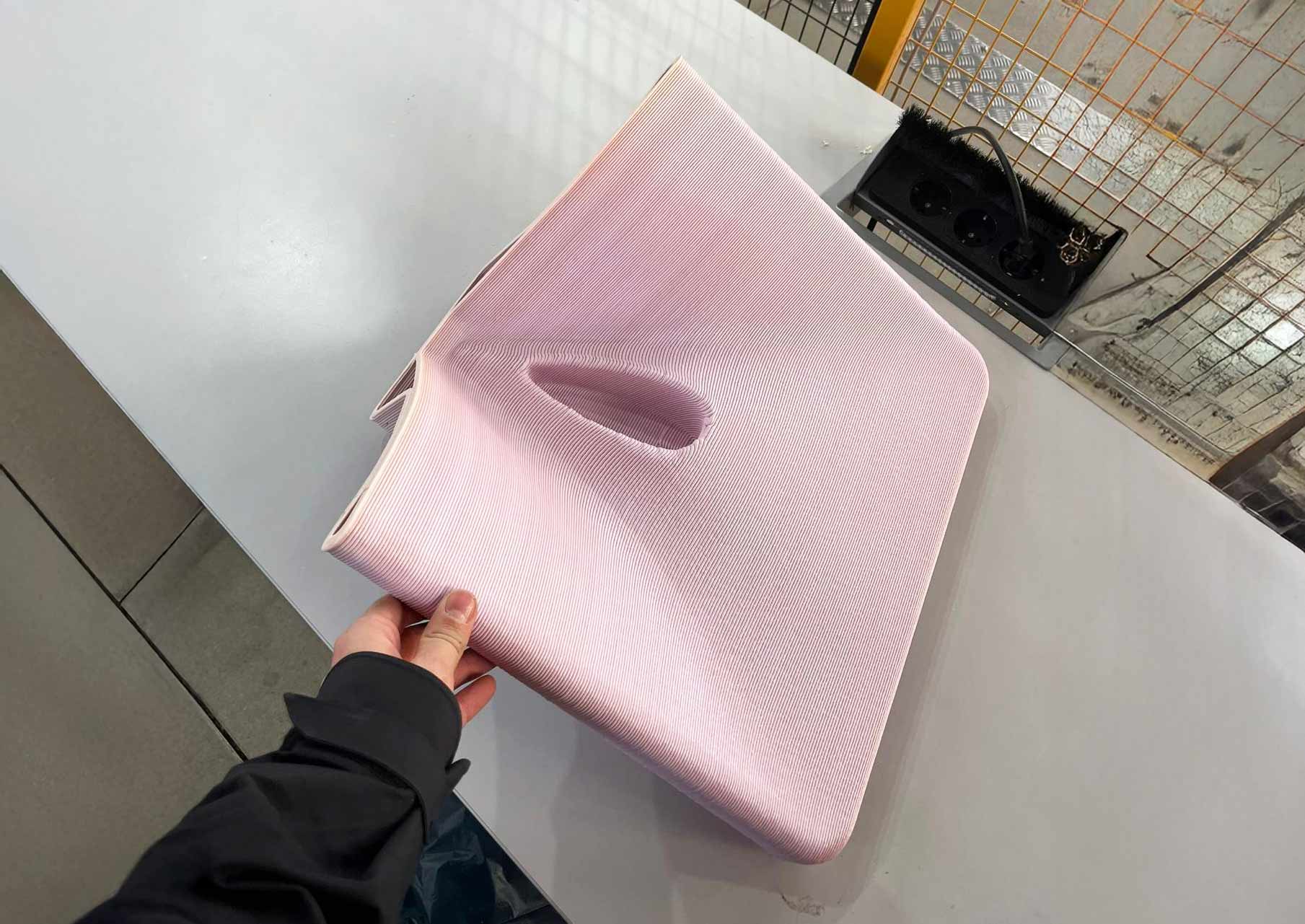 Er is een proof of concept ontwikkeld met LFAM in vezelversterkt kunststof. Deze variant is sterk en robuust en daardoor bijzonder geschikt voor toepassingen waar duurzaamheid en mobiliteit belangrijk zijn, zoals festivals, outdoor installaties en clubs.